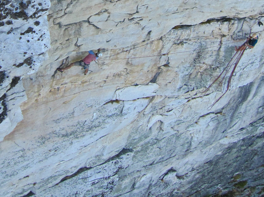 Lessons is bound by both the beauty of flawless white rock and the horror of committing run-outs on difficult terrain. In every direction multiple 11's & 12's each with hard R & X climbing silently await a repeat ascent. You will likely finish this route with tapped adrenal glands and a mind reeling from your lesson in history.