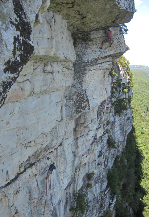 This link-up stands as a monument to Rich Romano who not only pioneered roughly two-thirds of the climbs at Millbrook but whose vision, creativity, boldness, and persistence has resulted in 34 years of first ascents at the Bank. Although