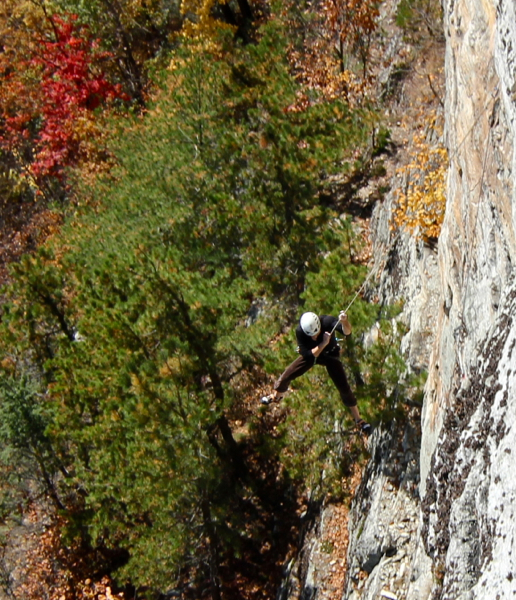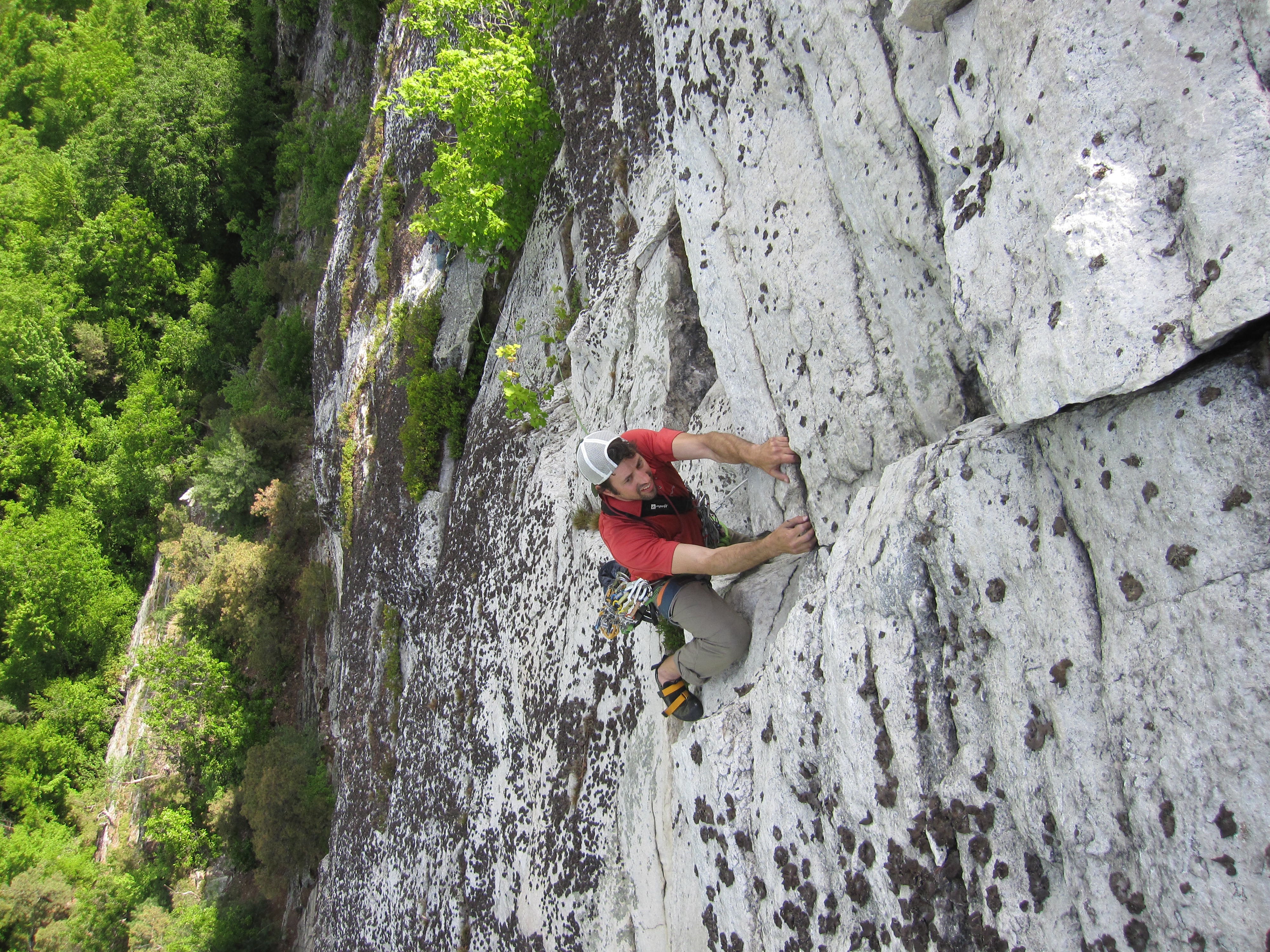 Delicate moves high above Death Ledge, Remembrance and The Movie Star loom in the background